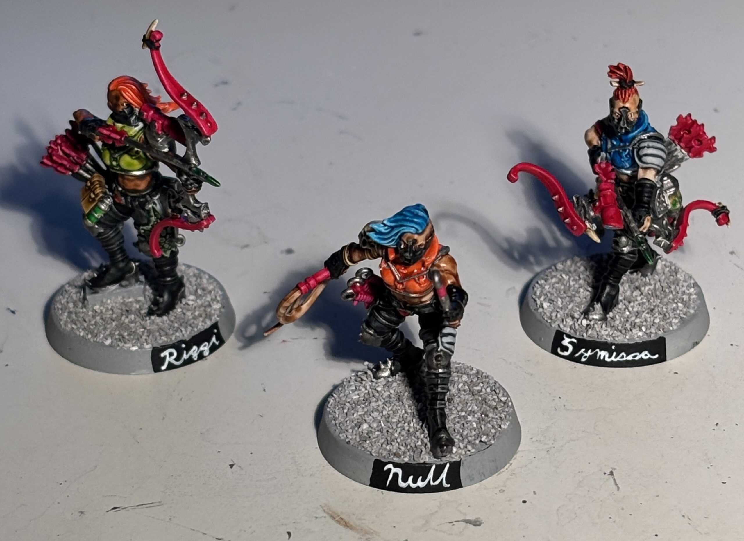 Finally I have some complete Wyld Runners! Rizzi and Symissa are the standard ones for the gang, with the bows and a converted scope added to make them actually usable. Null is a necessity. The Escher card deck can add a free Wyld Runner with throwing knives and a whip, and also some…