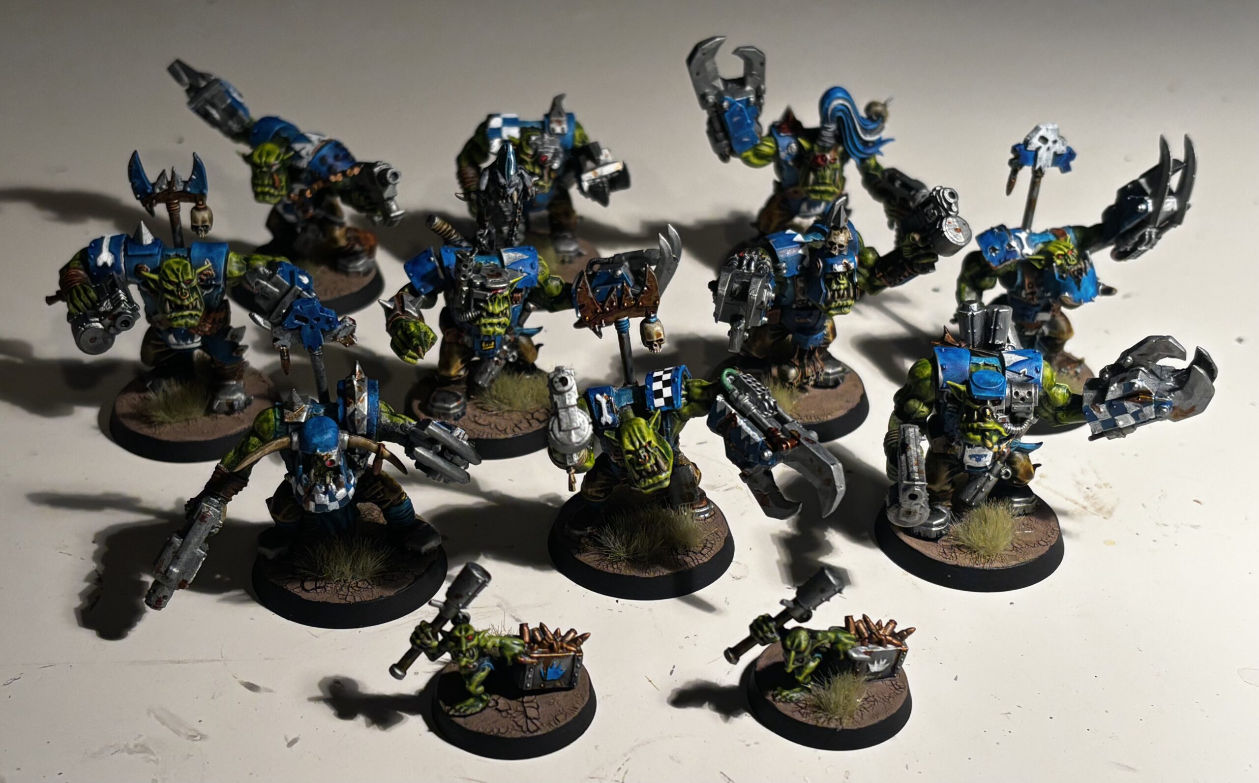 It’s been a bit busy, so I’ve had this project done for a bit. 10 Ork Nobs with Power Klaws and two Ammo Runts: