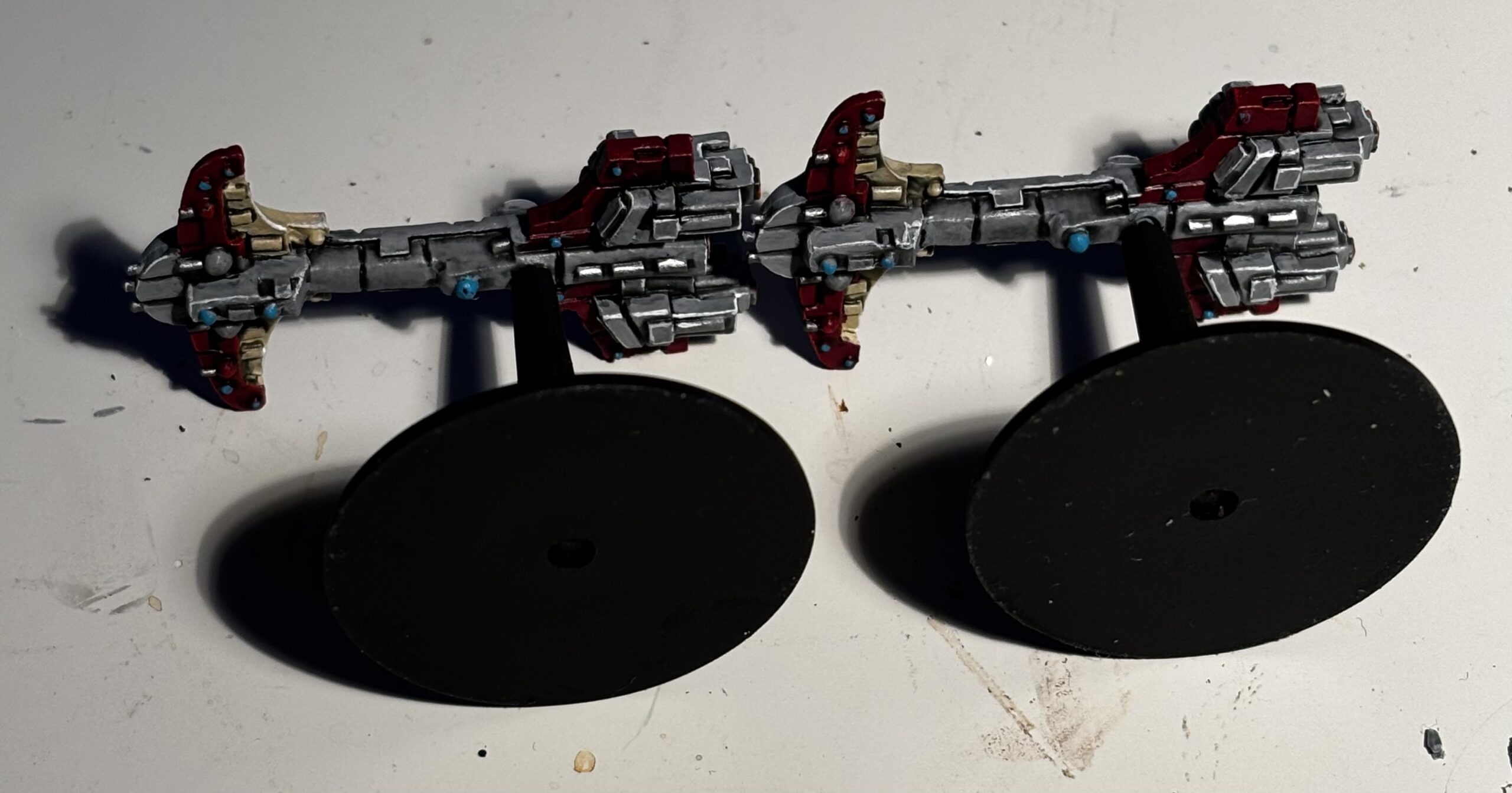 So, the latest addition to my Space Marine fleet: Spear Squadron. Complimentary to Sword Squadron, I can now field two full squadrons of Gladius Frigates. For… reasons…
